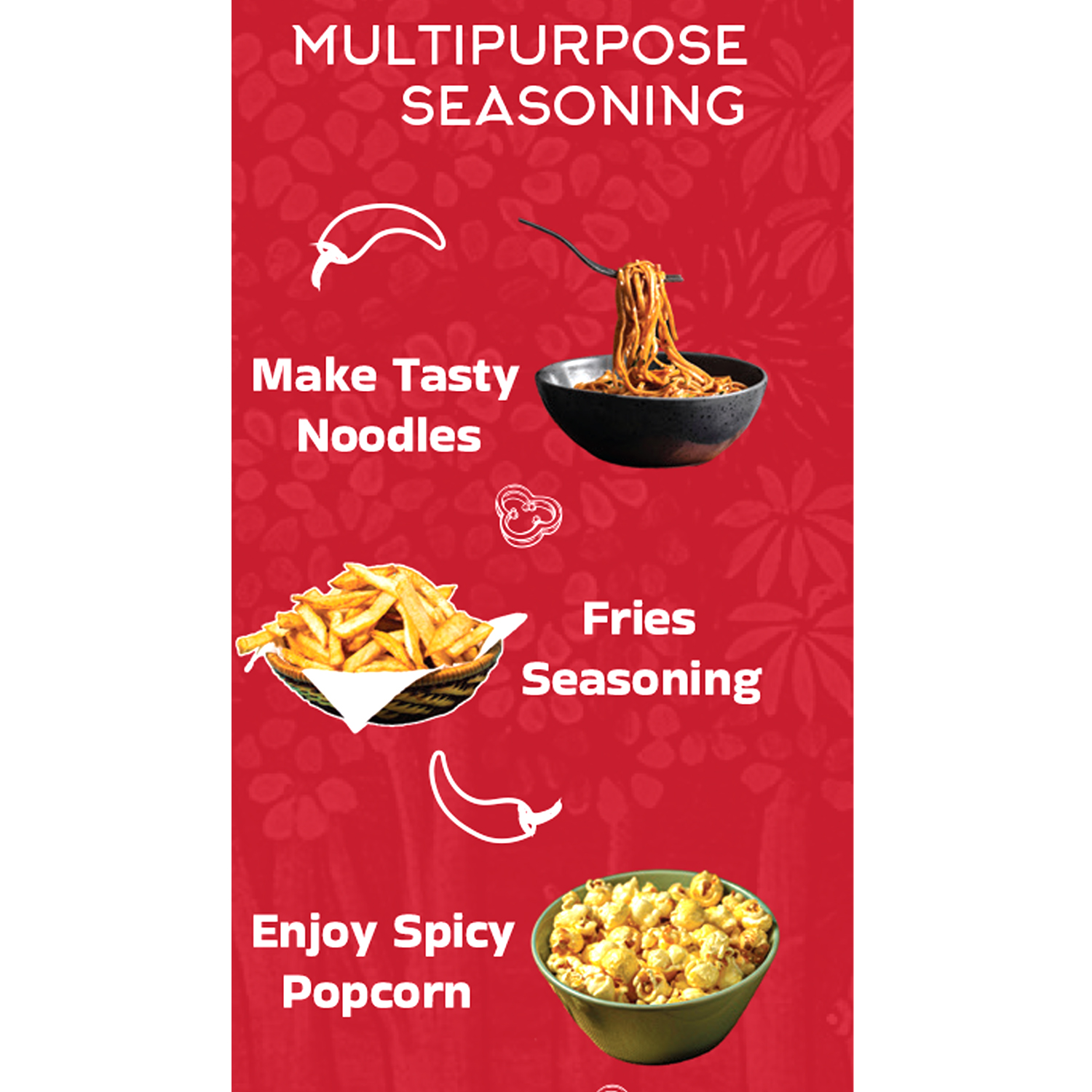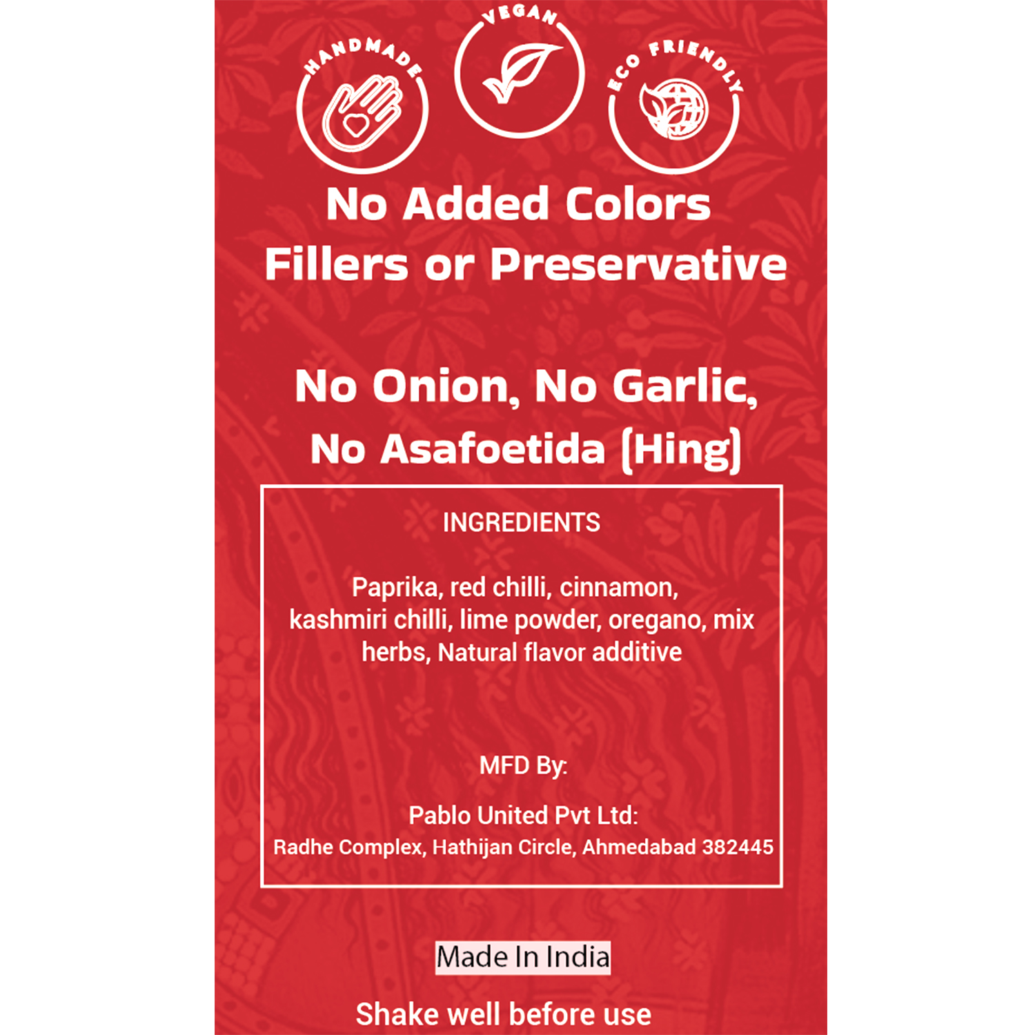 Made without Onion & Garlic and with Exotic Spices, this Jain Peri Peri Seasoning promises Taste when mixed with Popcorn, Pasta, Pizza, Nachos & Fries, Makhana, Baked Potatoes, Salad, and even Dal Chawal.